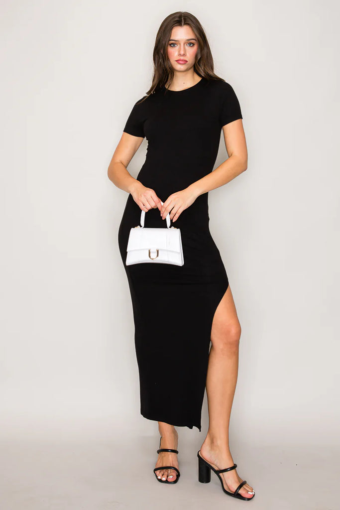 - Cuello redondo- Manga corta- Corte ajustado- Tejido de canalé 2x1- 96% rayón, 4% elastano