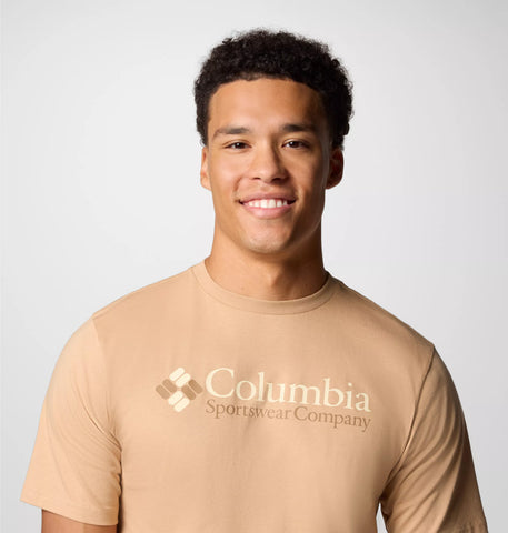 Esta camiseta de manga corta está confeccionada en jersey de algodón suave y luce un logotipo de Columbia de gran tamaño en el pecho.