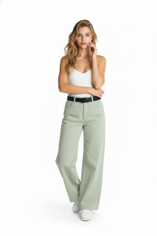 Este pantalón wide leg de tiro alto es una pieza esencial para lograr un look moderno, cómodo y versátil. Su corte recto y pierna amplia estiliza la silueta, mientras que el tiro alto brinda un ajuste favorecedor que se adapta fácilmente al cuerpo.