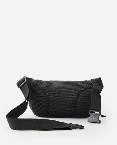 Características:POLIÉSTER RECICLADO Alto: 190 mm Ancho: 350 mm Profundidad: 90 mm • Bolsillo frontal • Correa de cintura ajustable