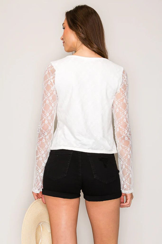 Cárdigan de encaje forrado con lazo frontal- Cárdigan con escote en V profundo- Manga larga- Cuerpo forrado- Doble abertura frontalcon lazo - Costura de picot en el escote hasta el frente- Tejido de encaje elástico rosa- 92% nailon, 8% elastano