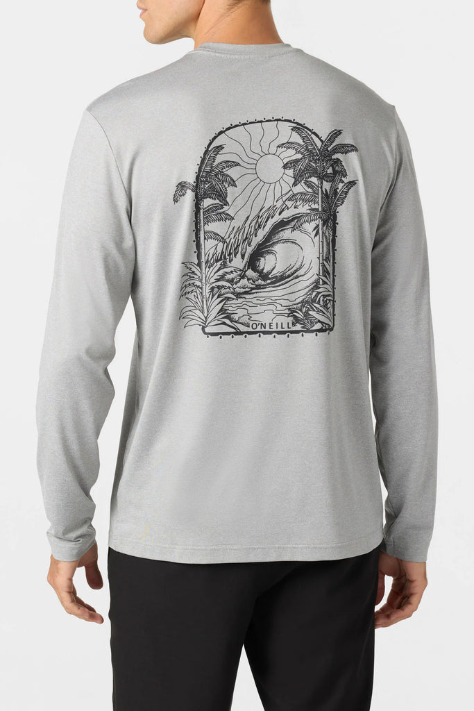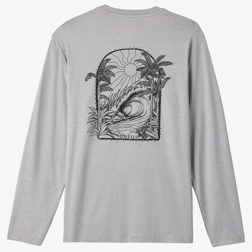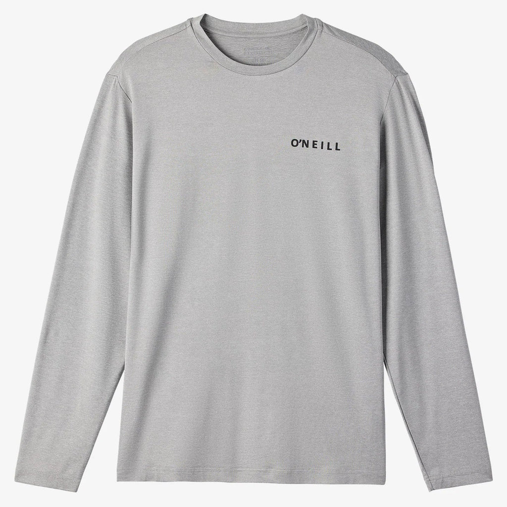 Camisa de manga larga con capucha UPF para hombre, 170 GSM, ajuste estándar, tela O'Neill Smart Shield, sensación ligera, protección solar UPF 50+, absorción de humedad O'Neill Hyperdry, tratamiento antimicrobiano, serigrafía de alta calidad, 40% poliéster reciclado, 51% poliéster, 9% mezcla de elastano